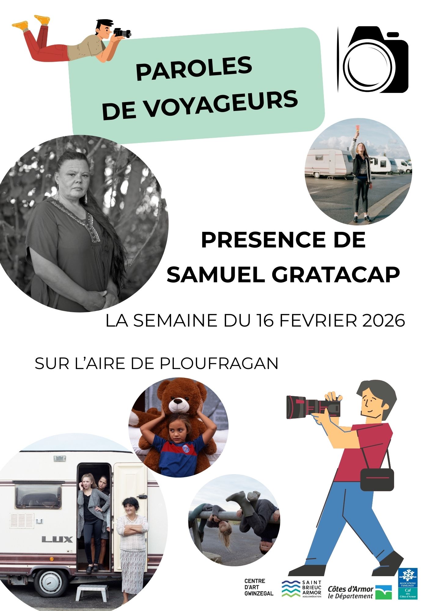 Le projet « PAROLES DE VOYAGEURS » s’est déroulé en 2016, sur les aires de Ploufragan et Trégueux. Samuel GRATACAP, photographe, s’y était déplacé pour rencontrer les habitants et réaliser une série de photos qui donnent à voir le quotidien des Voyageurs, en partenariat avec le centre d’art photographique GwinZegal de Guingamp.