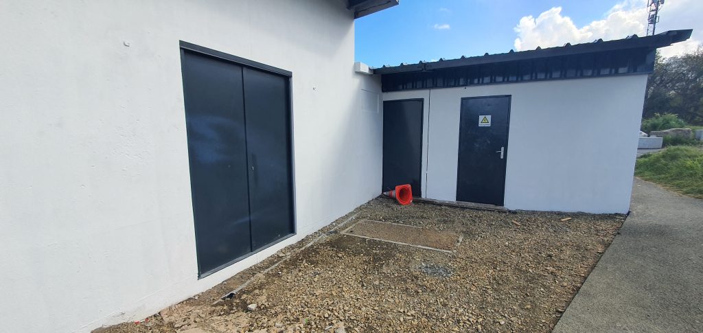La pluie a pimenté un peu les choses avec des passages intermittents, mais à tout problème ses solutions : nous avons installé une bâche pour protéger l’un des pans et un habitant nous a prêté son souffleur pour faire sécher la peinture avant que la pluie ne la fasse couler.
