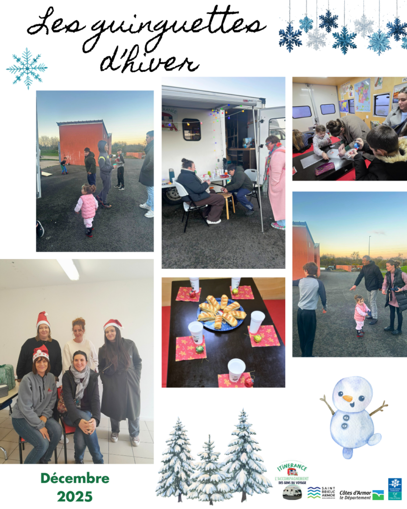 Tout au long du mois de Décembre, nous avons animé des guinguettes de Noël sur les aires d’accueil de l’Agglomération de Saint Brieuc. Ce sont des temps conviviaux, permettant de rassembler les habitants de l’aire et de passer un moment privilégié ensemble.